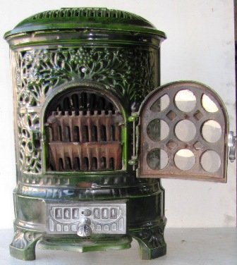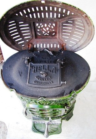 sized stove, and is called a 'poele à feu visible et