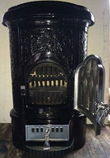 sized stove, and is called a 'poele à feu visible et