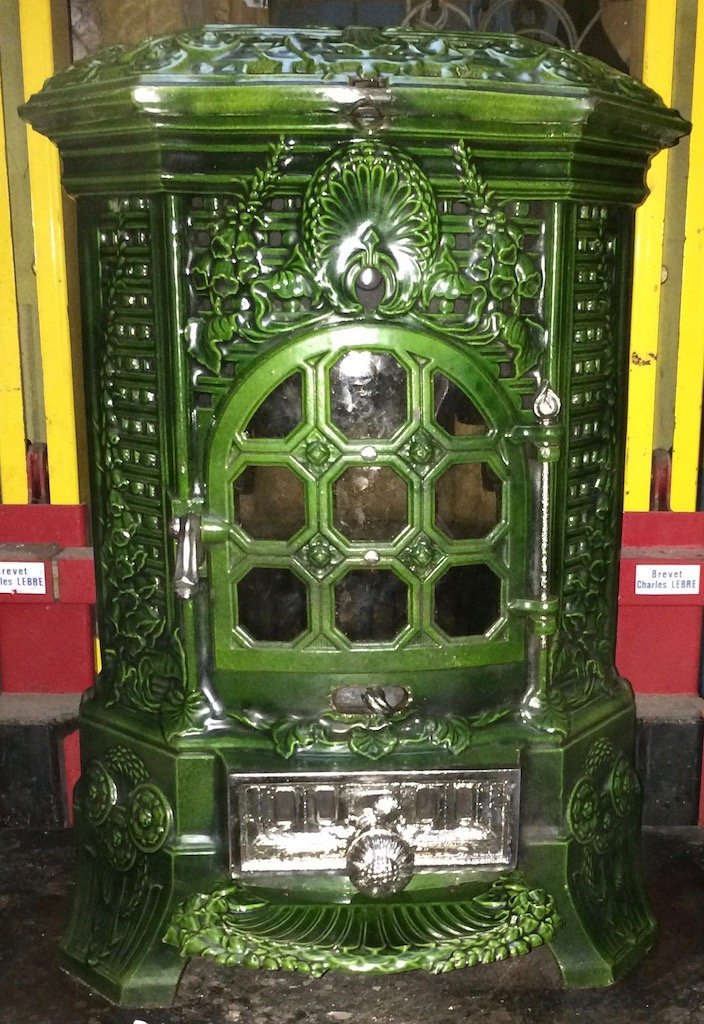 sized stove, and is called a 'poele à feu visible et