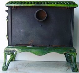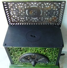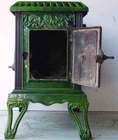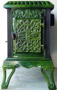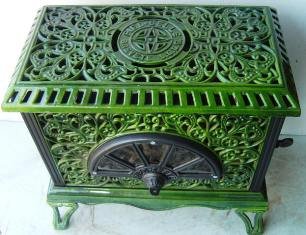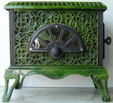 is a superb little art nouveau style log burner by the